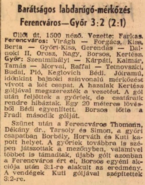 1958.IX.27. Ferencváros – Győr 3:2 (edzőmérkőzés)