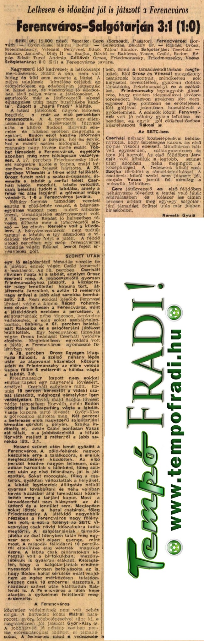 1958.XII.17. Ferencváros – SBTC 3:1