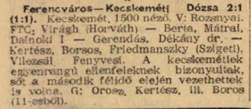 1959.III.11. Kecskeméti Dózsa – Ferencváros 1:2 (edzőmérkőzés)