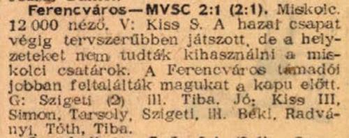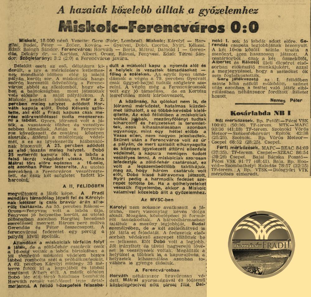 1959.III.8. Miskolci VSC – Ferencváros 0:0