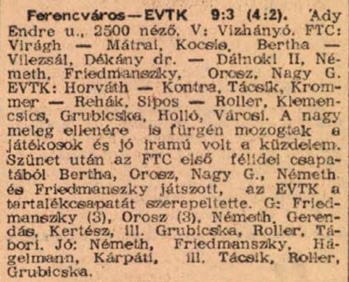 1959.VII.11. EVTK – Ferencváros 3:9 (edzőmérkőzés)