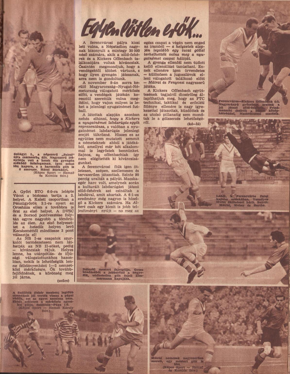 Kategória: 1959/60 | Címke: 1959/60, Albert Flórián, Dálnoki József, Fenyvesi Máté dr., Friedmanszky Zoltán, Kickers Offenbach, Mátrai Sándor, nemzetközi mérkőzés, Orosz Pál dr.