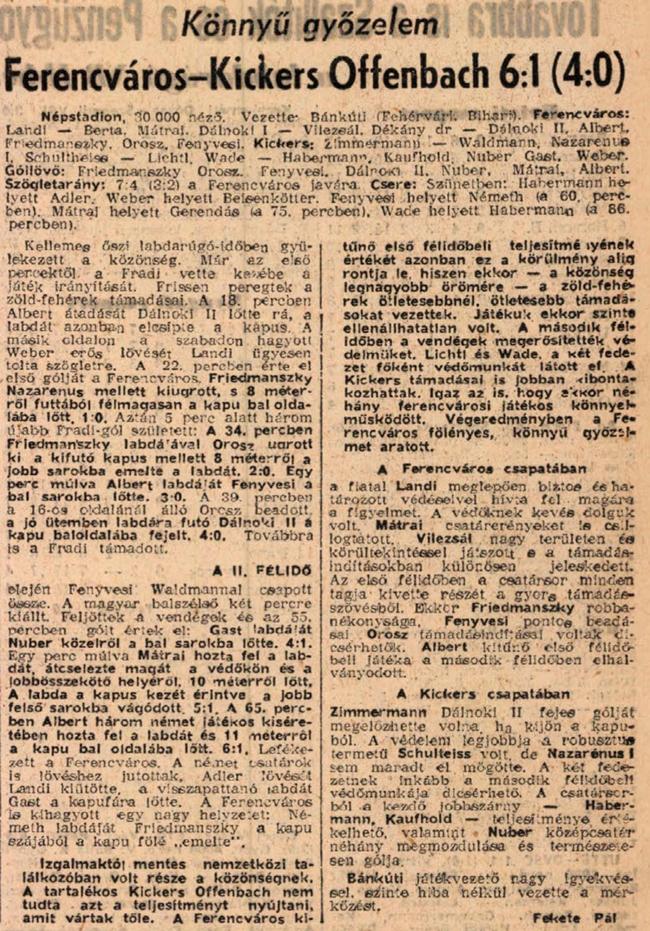 1959.X.4. Ferencváros – Kickers Offenbach 6:1