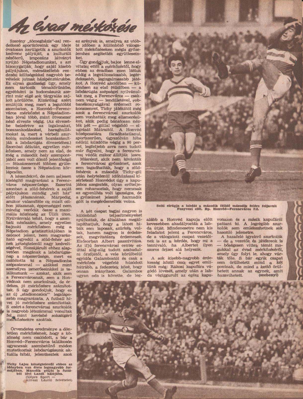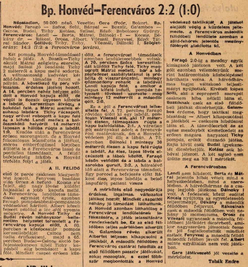 « 1960.IV.26. Ferencváros – Dinamo Zagreb 1:0 1960.V.4. Ferencváros – GD Hajógyár 9:1 (edzőmérkőzés) »
