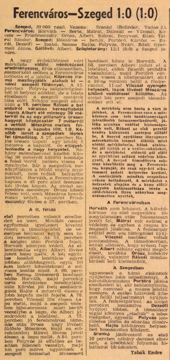 Kategória: 1959/60 | Címke: 1959/60, Albert Flórián, büntető (kihagyott), Gyurcsó János, NB1, Szeged, Vilezsál Oszkár