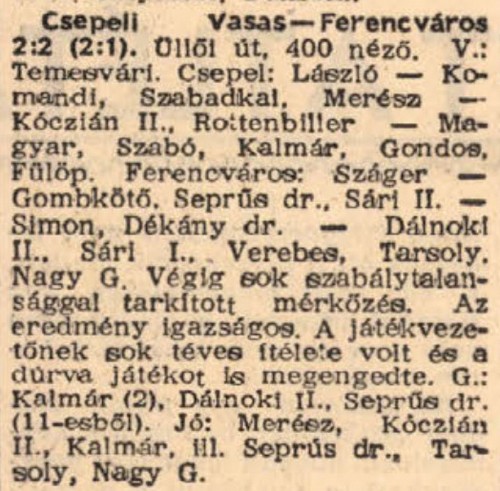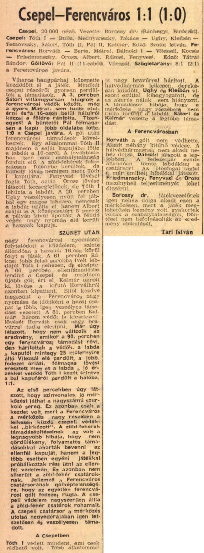 1960.VIII.14. Csepel – Ferencváros 1:1