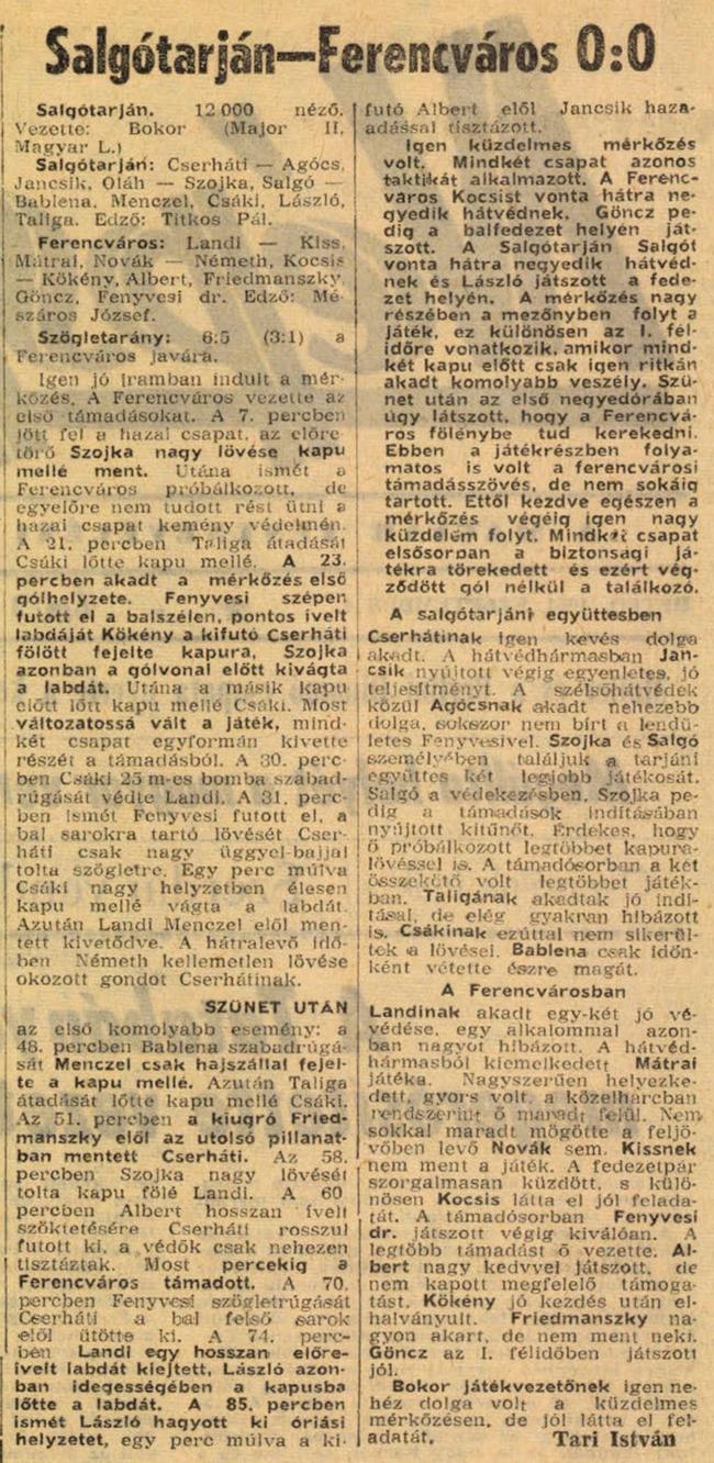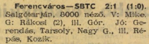 1961.IX.3. SBTC – Ferencváros 0:0 Közzétéve: 2009. március 2. hétfő | Szerző: K@rcsi 4 hozzászólás a(z) 1961.IX.3. SBTC – Ferencváros 0:0 bejegyzéshez szabom on 2015. július 1. szerda - 20:29 A Kökény-Kotász kép tévedésből kerülhetett ide. admin on 2015. július 4. szombat - 16:13 Igen, ez az augusztusi Honvéd elleni meccs fotója. szabom on 2015. július 4. szombat - 17:11 Az 1962 áprilisié, de ez teljesen mindegy. admin on 2015. július 4. szombat - 17:15 És tényleg…Dehogy mindegy. Vélemény, hozzászólás? Válasz megszakításaAz e-mail címet nem tesszük közzé. A kötelező mezőket * karakterrel jelöltük Hozzászólás * Név * E-mail cím * Honlap Δ
