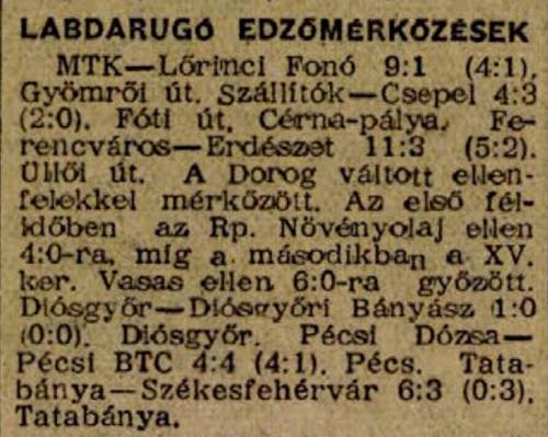 1961.V.31. Ferencváros – Erdészet 11:3 (edzőmérkőzés)