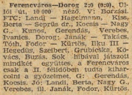 Kategória: 1961/62 | Címke: 1961/62, Albert Flórián, Dorog, NB1, Orosz Pál dr.