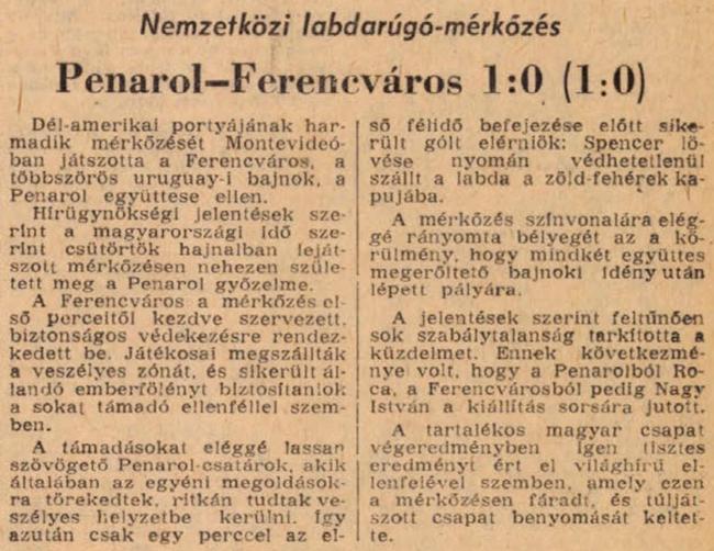 Kategória: 1961/62 | Címke: 1961/62, Mathesz Imre, Nagy István, nemzetközi mérkőzés, nsmiss25, Penarol, piros lap (itt is - ott is), Szimcsák István