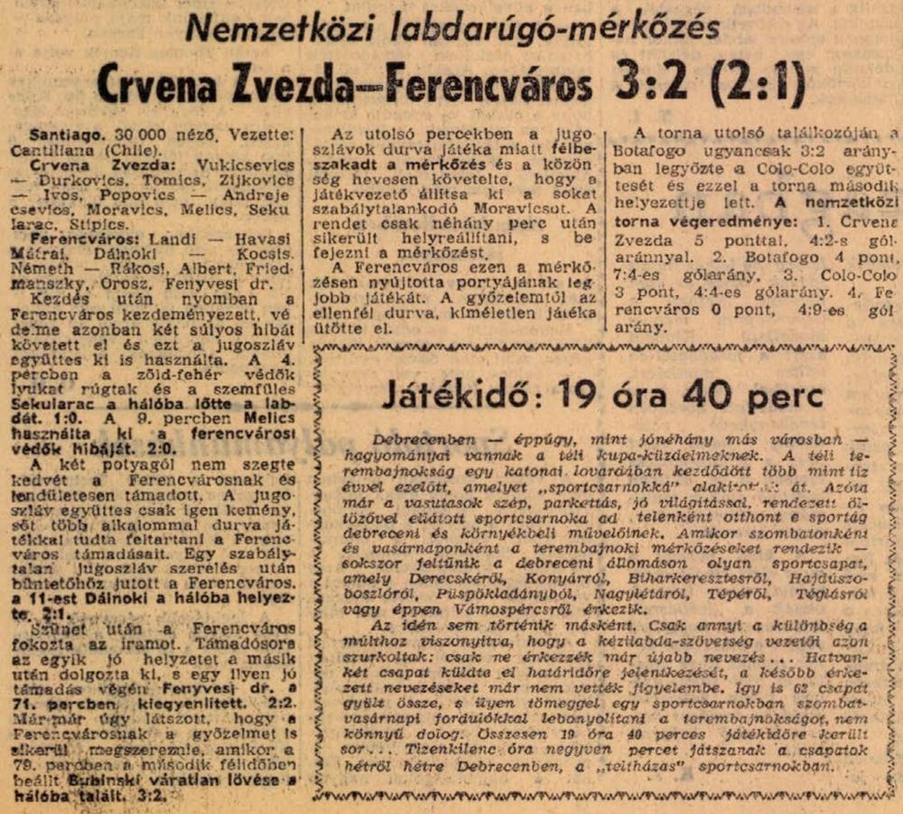 1962.I.14. NT, Crvena Zvezda – Ferencváros 3:2