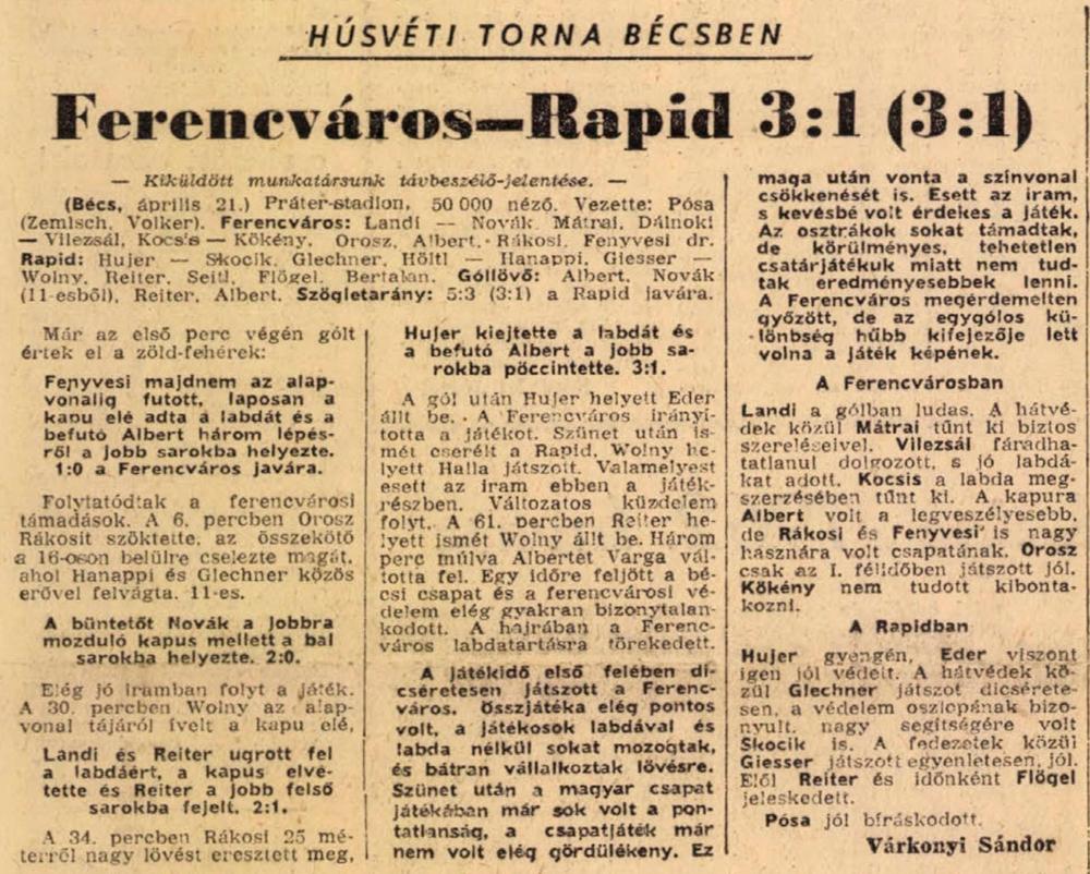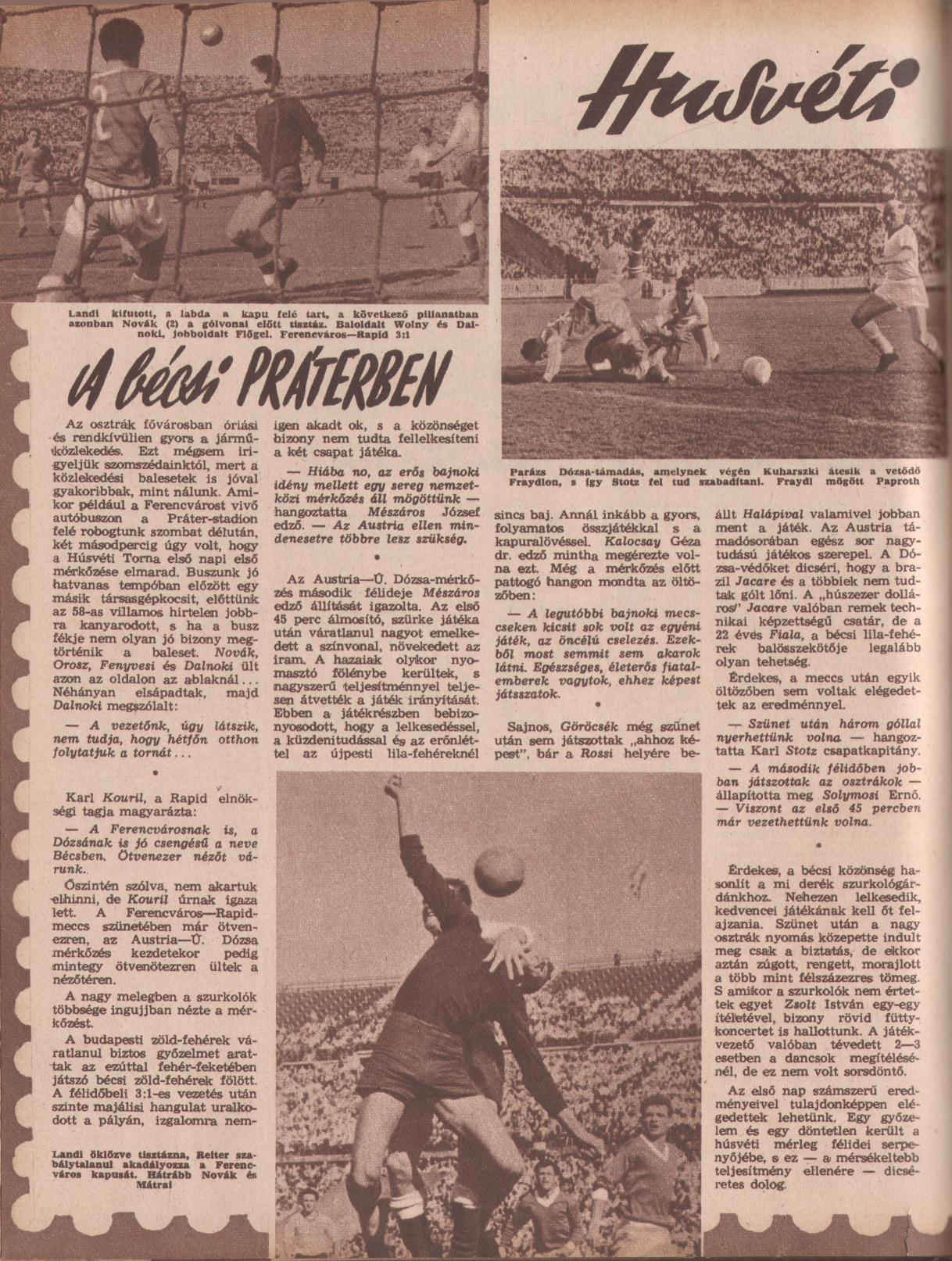 Ennyit találtam a Népsport 1962. 04. 19-i csütörtöki számában:
