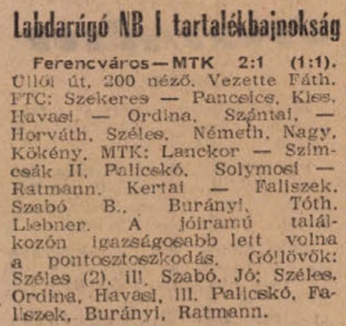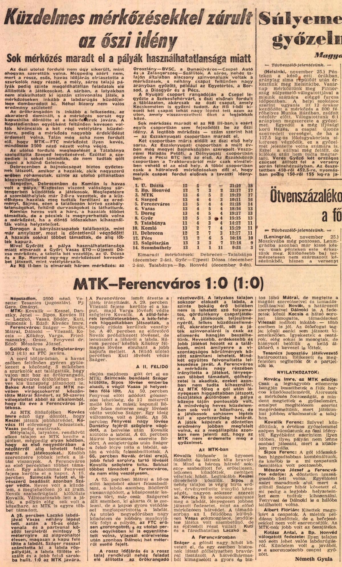 1962.XI.25. Ferencváros – MTK 0:1