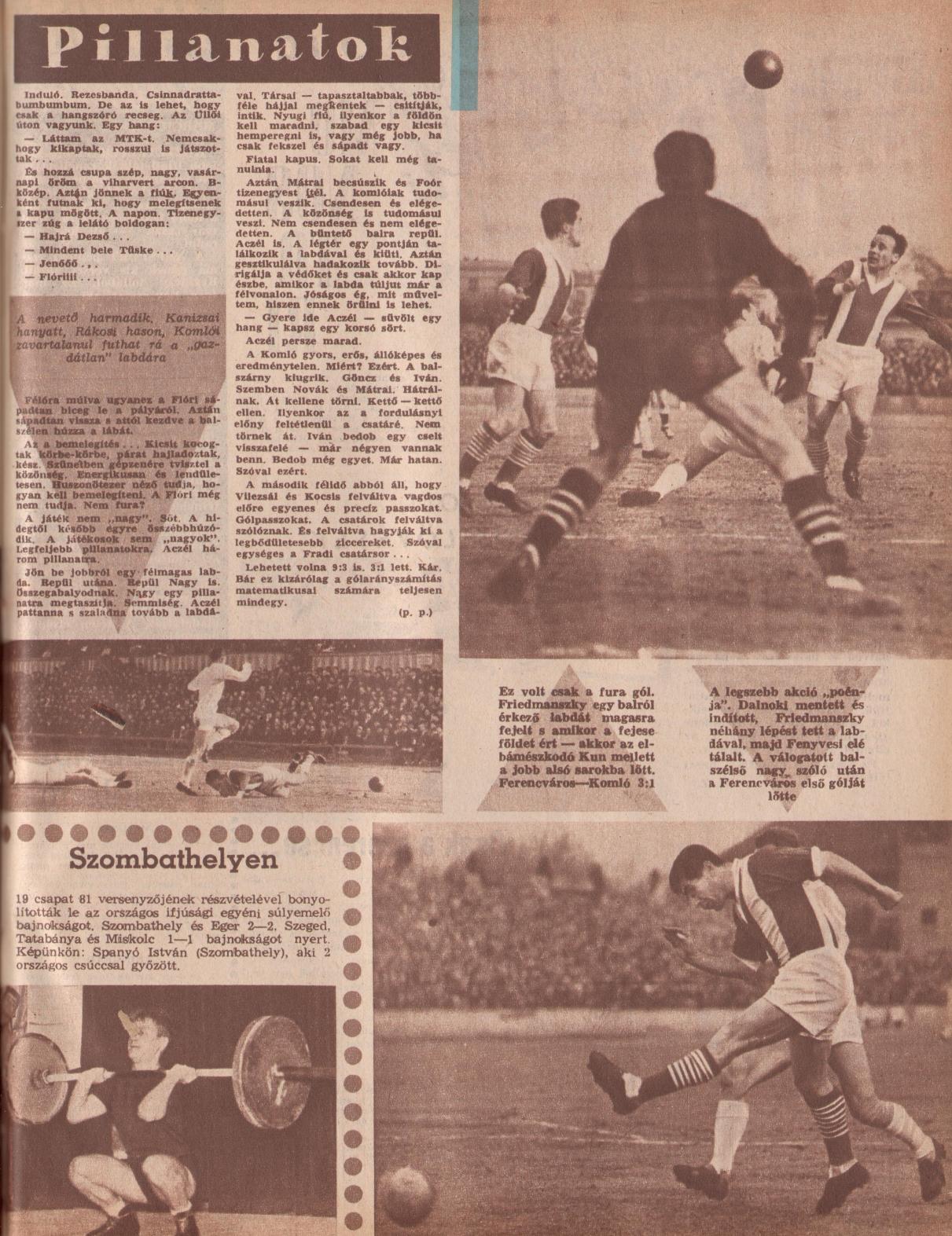 Kategória: 1962/63 | Címke: 1962/63, Aczél László, büntető (védett), Fenyvesi Máté dr., Friedmanszky Zoltán, Göncz István, Komló, NB1, Novák Dezső, öngól, Rákosi Gyula