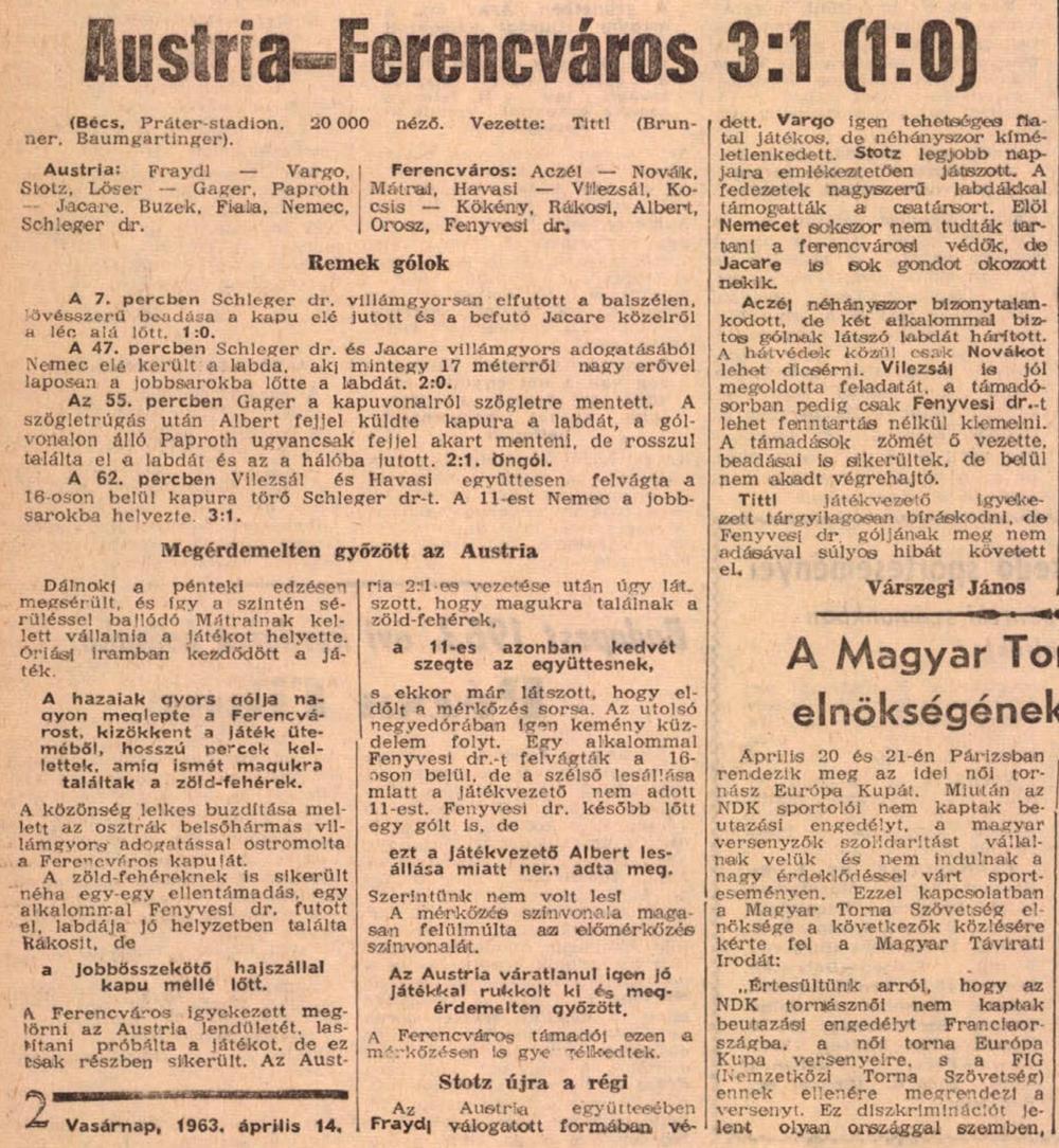 1963.IV.13. Húsvéti torna, Austria – Ferencváros 3:1