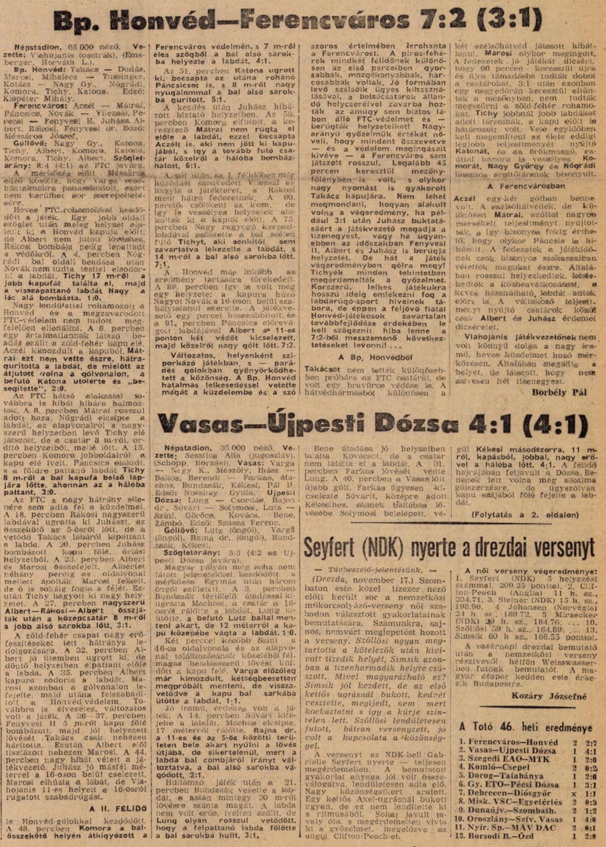 1963.XI.17. Ferencváros – Bp. Honvéd 2:7 Közzétéve: 2009. március 4. szerda | Szerző: K@rcsi Tichy gólja Egy közvetett szabadrúgás Honvéd sorfal a gólvonalon Díjnyertes fotó! 1:4 0:1 Egy hozzászólás a(z) 11110101011ejegyzéshez Kiss Barna on 2015. április 18. szombat - 16:40 gombocbol is sok Vélemény, hozzászólás? Válasz megszakításaAz e-mail címet nem tesszük közzé. A kötelező mezőket * karakterrel jelöltük Hozzászólás * Név * E-mail cím * Honlap Δ