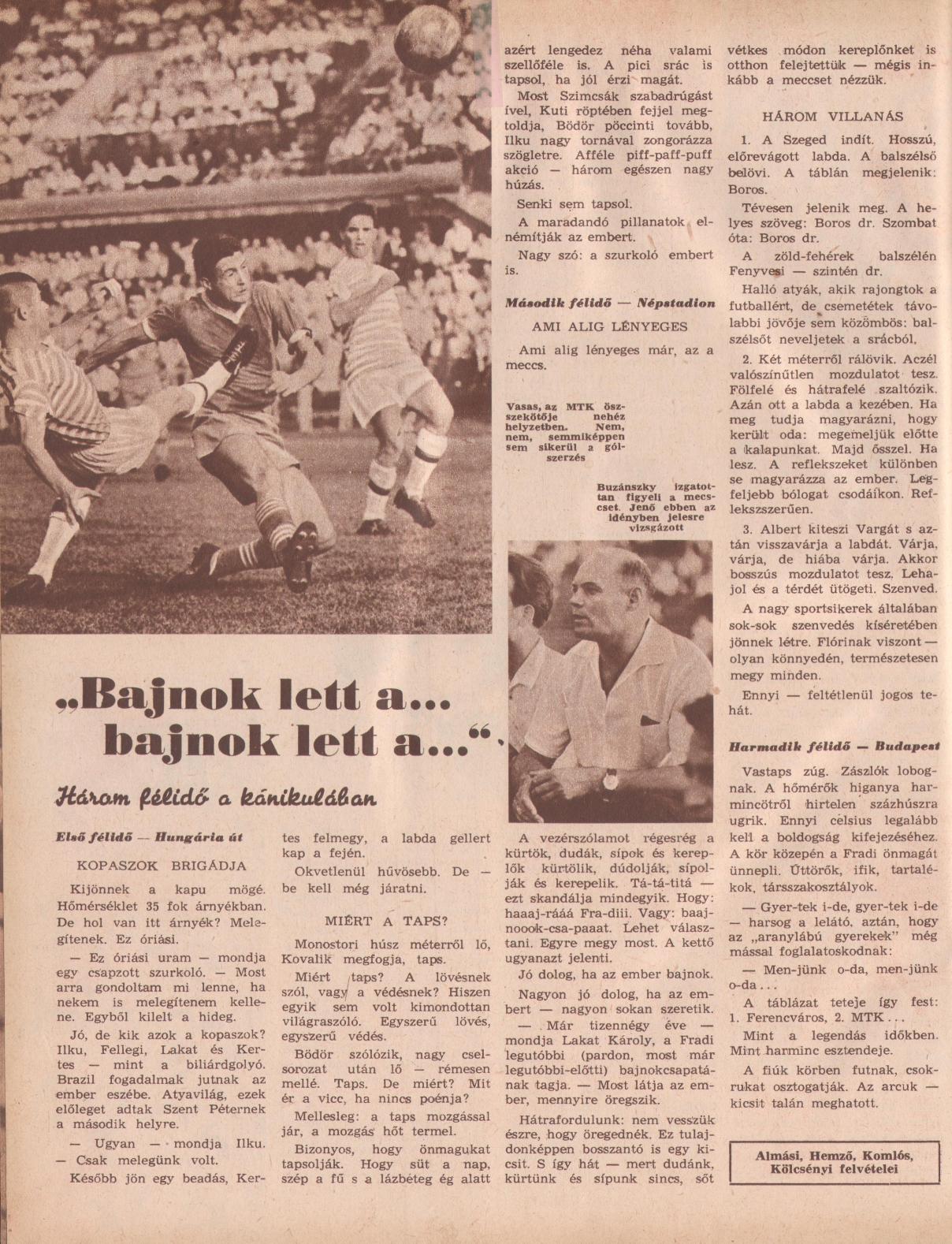 Mi szurkolók a meccs után a Verseny utcában vonulva ezt tömörebben fejeztük ki, mert amíg a rendőrök szét nem kergettek minket azt skandáltuk: „Megengedte Kádár János, bajnok lett a Ferencváros!”
