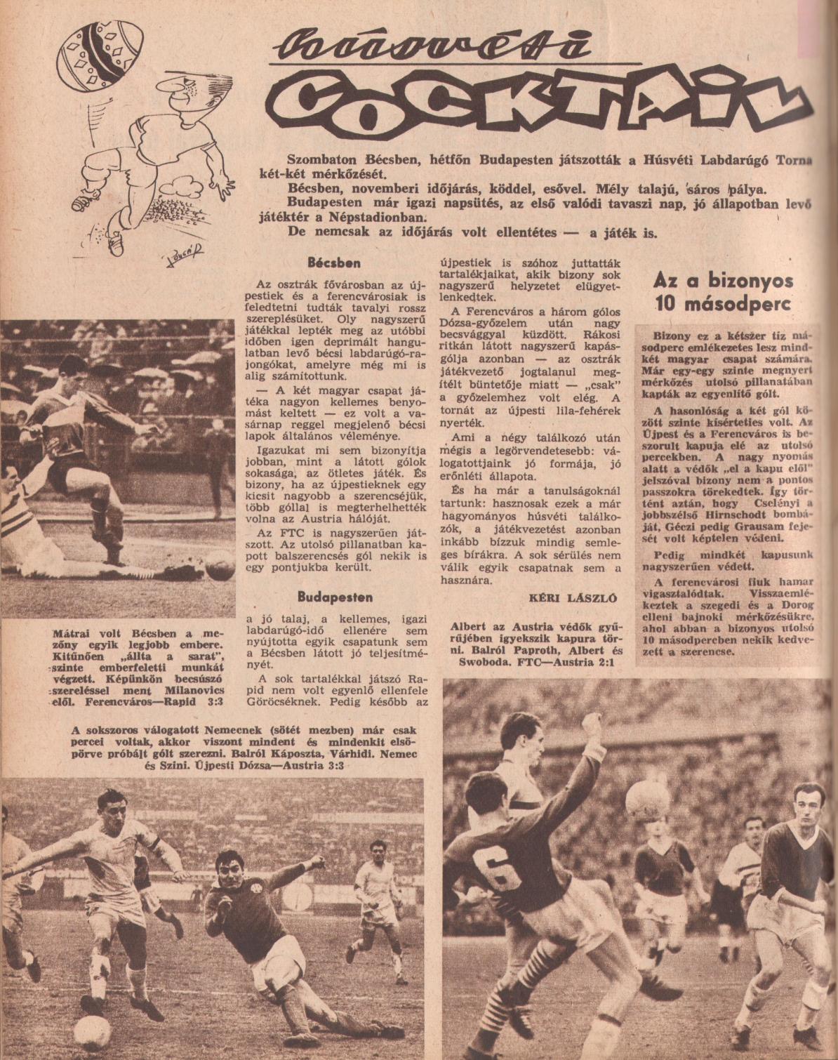 Kategória: 1964 | Címke: 1964, Albert Flórián, Húsvéti Torna, nemzetközi mérkőzés, Rapid, Rátkai László