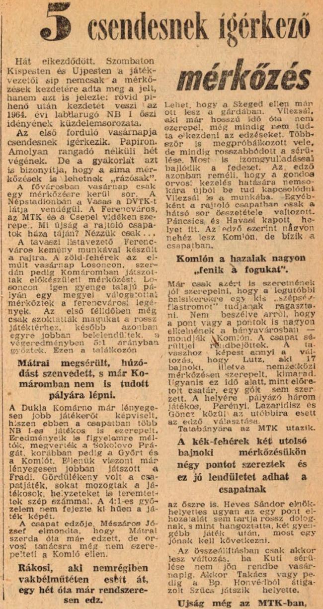 1964.VI.28. Losonc válogatott – Ferencváros 1:5
