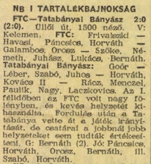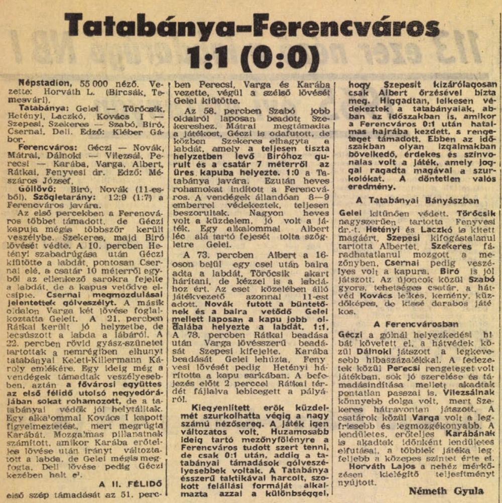 1965.III.14. Ferencváros – Tatabánya 1:1