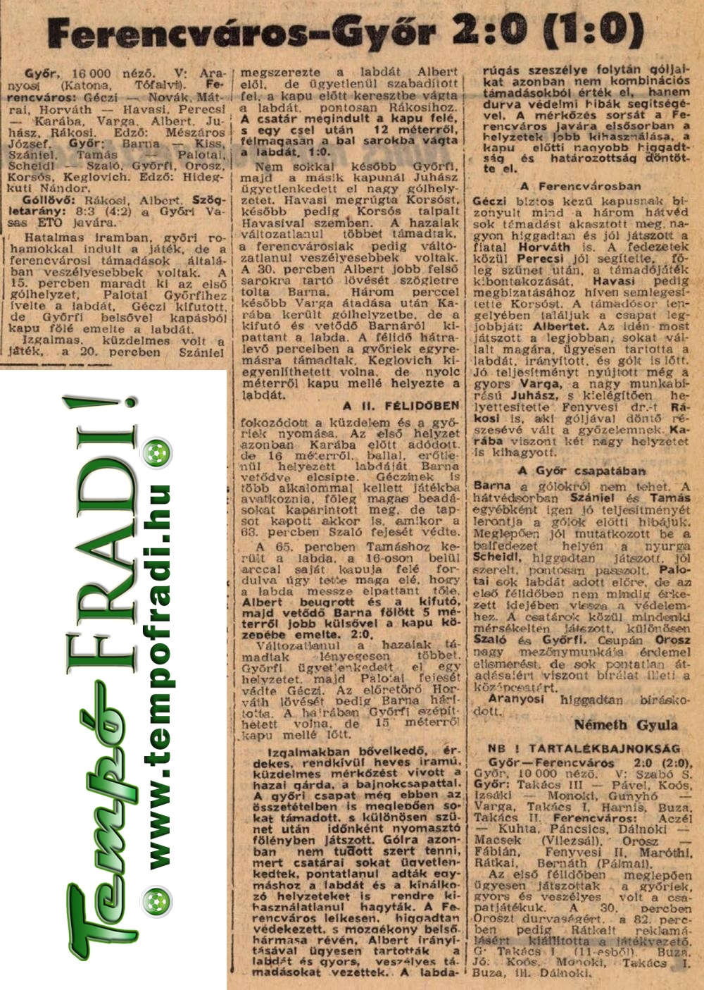 Kategória: 1965 | Címke: 1965, Albert Flórián, Győri (Rába; Vasas) ETO, NB1, Rákosi Gyula