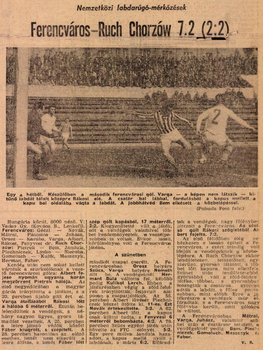1966.III.6. Ferencváros – Ruch Chorzów 7:2