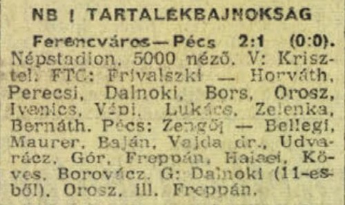 1966.IX.25. Ferencváros – Pécsi Dózsa 3:0 Közzétéve: 2009. március 7. szombat | Szerző: K@rcsi A közel egy órán át tíz emberrel játszó Ferencvárosnak nem jelentett nehéz akadályt a Pécs Vélemény, hozzászólás? Válasz megszakításaAz e-mail címet nem tesszük közzé. A kötelező mezőket * karakterrel jelöltük Hozzászólás * Név * E-mail cím * Honlap Δ