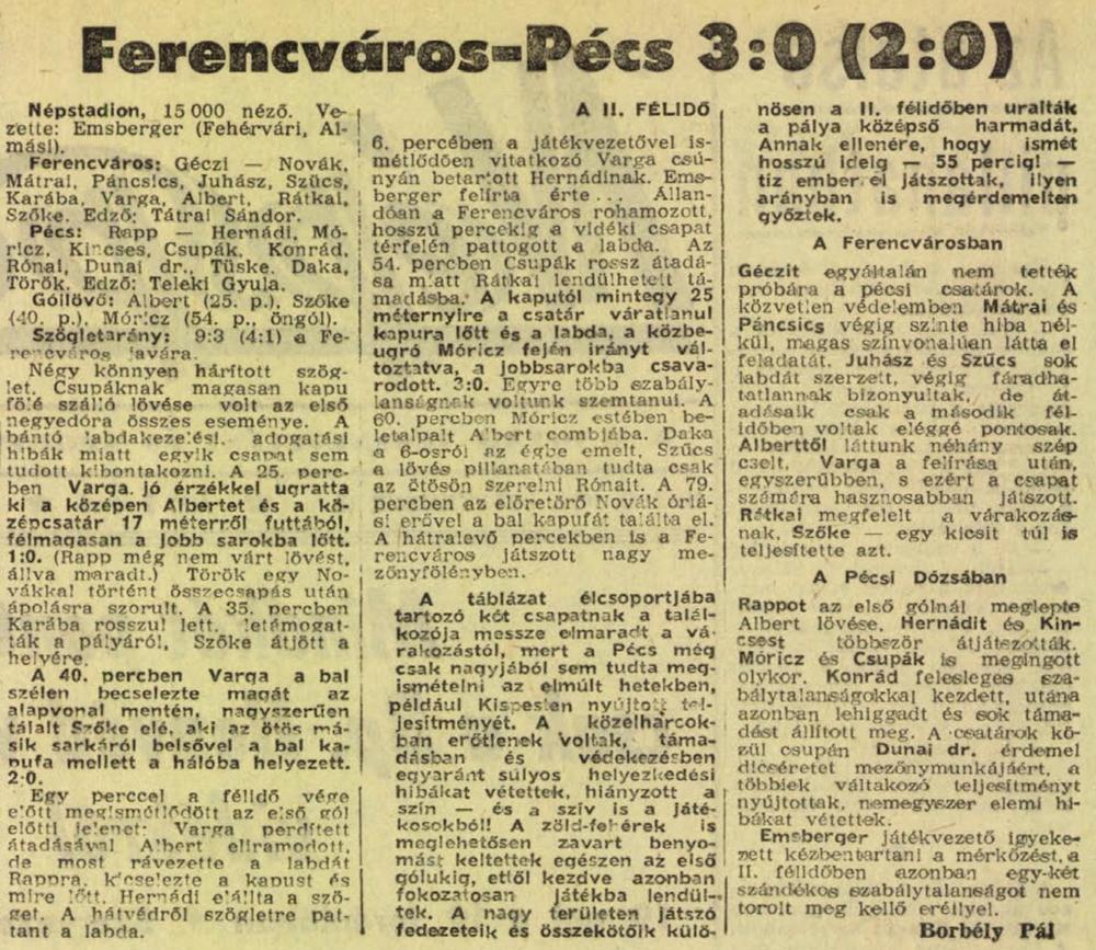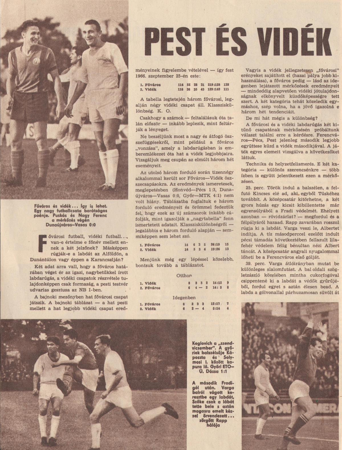 « 1966.IX.22. Balassagyarmati MÁV – Ferencváros 1:7 (edzőmérkőzés) 1966.IX.28. Magyarország – Franciaország 4:2 »