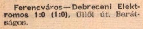 1966.V.5. Ferencváros – Debreceni Elektromos 1:0 (edzőmérkőzés)