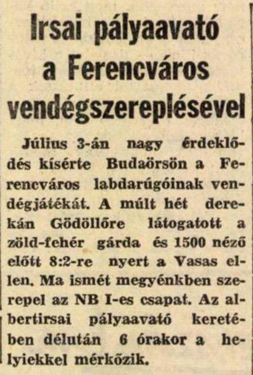1966.VII.6. Gödöllői Vasas – Ferencváros 2:8 (edzőmérkőzés)