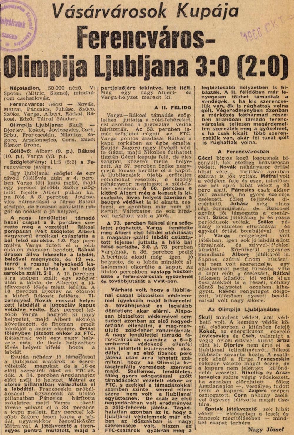 1966.X.5. VVK, Ferencváros – Olimpija Ljubljana 3:0