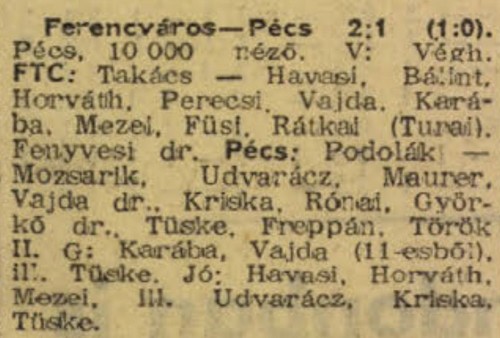 1967.III.12. Pécsi Dózsa – Ferencváros 0:2