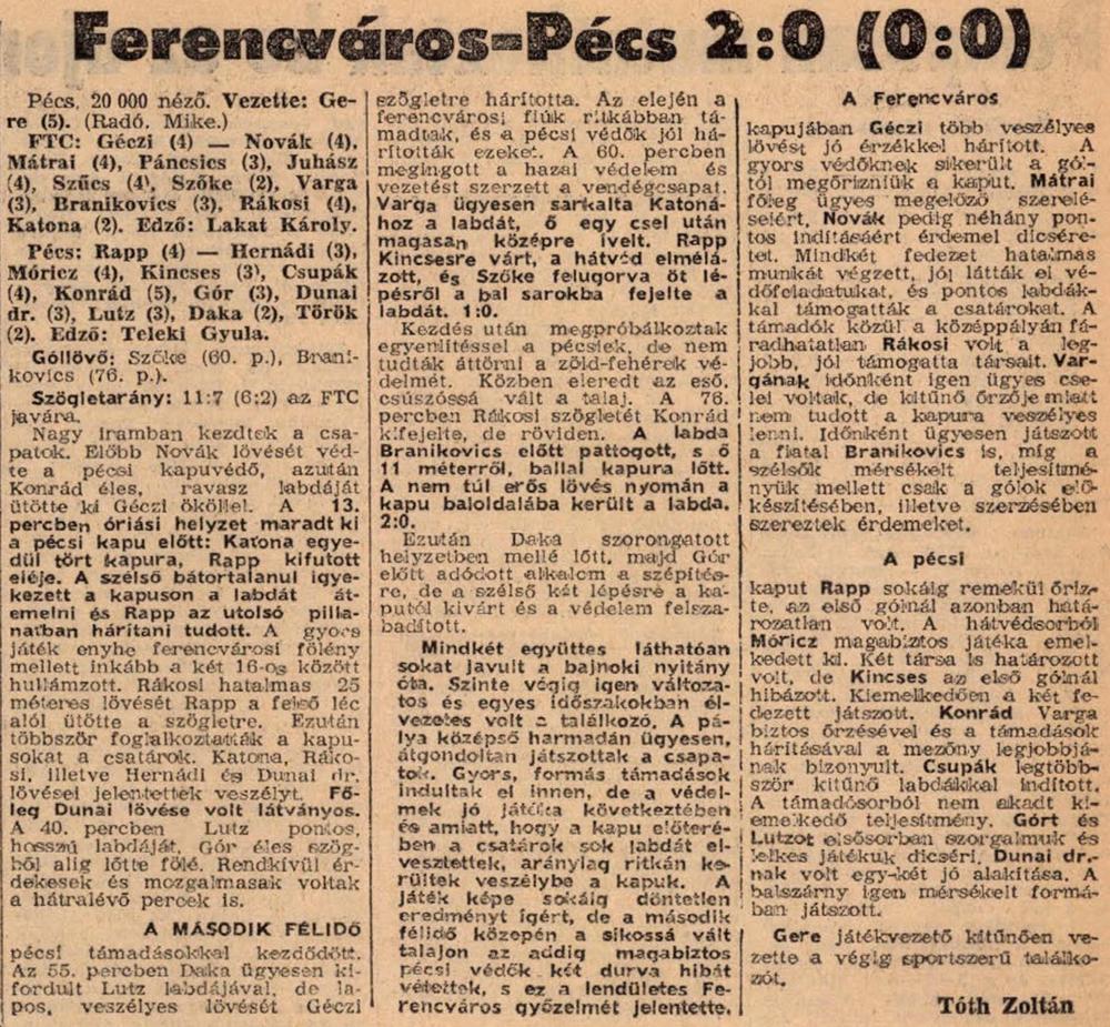 Kategória: 1967 | Címke: 1967, Branikovits László, Géczi István dr., NB1, Pécsi MSC, Szőke István