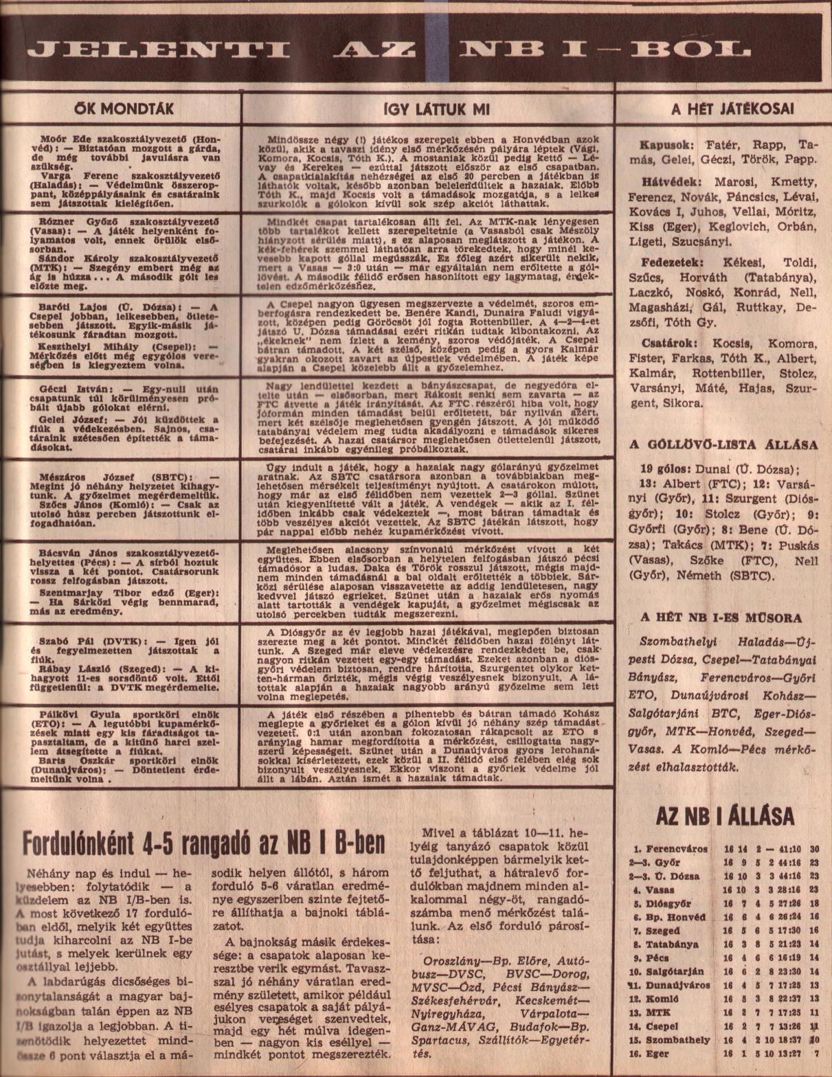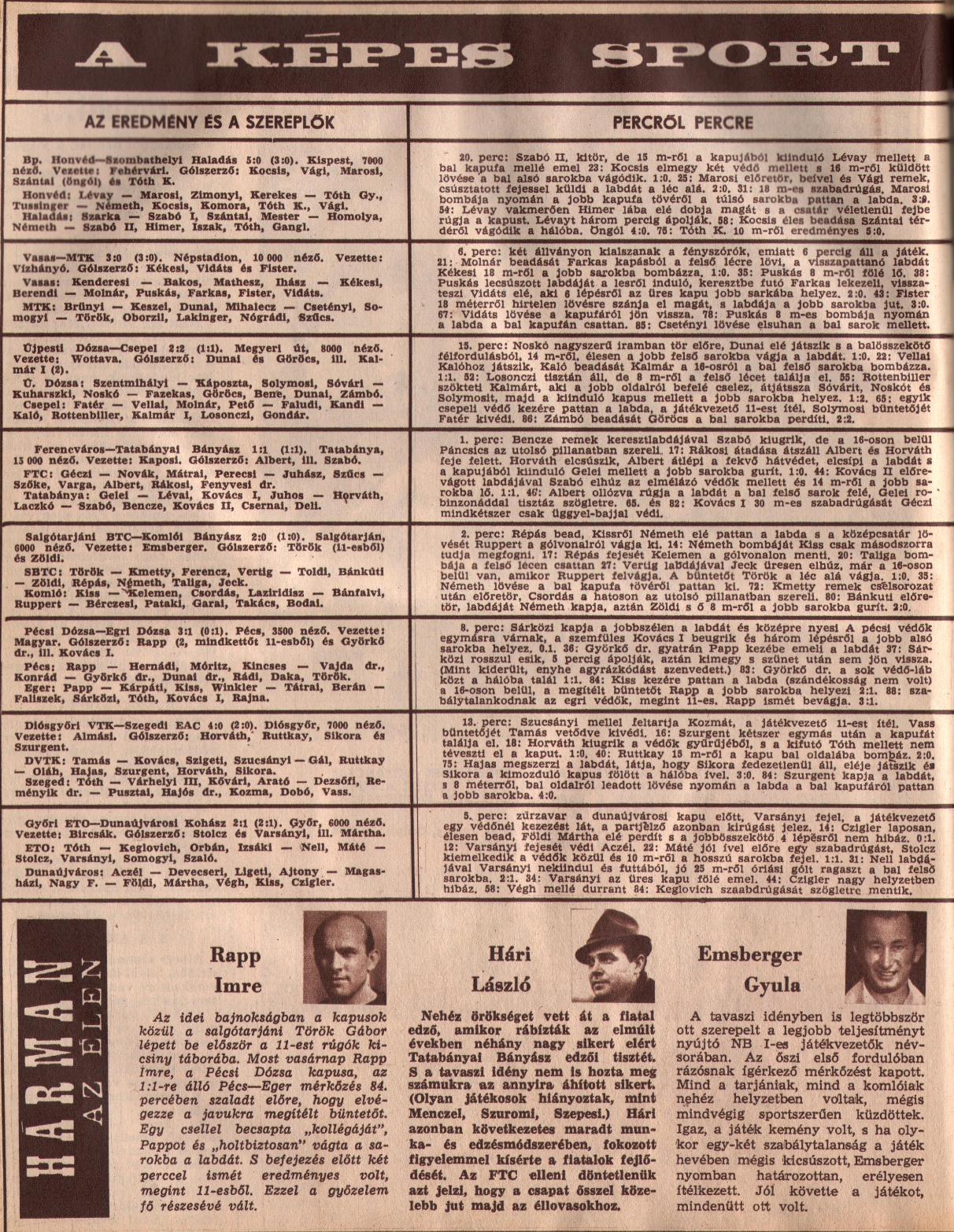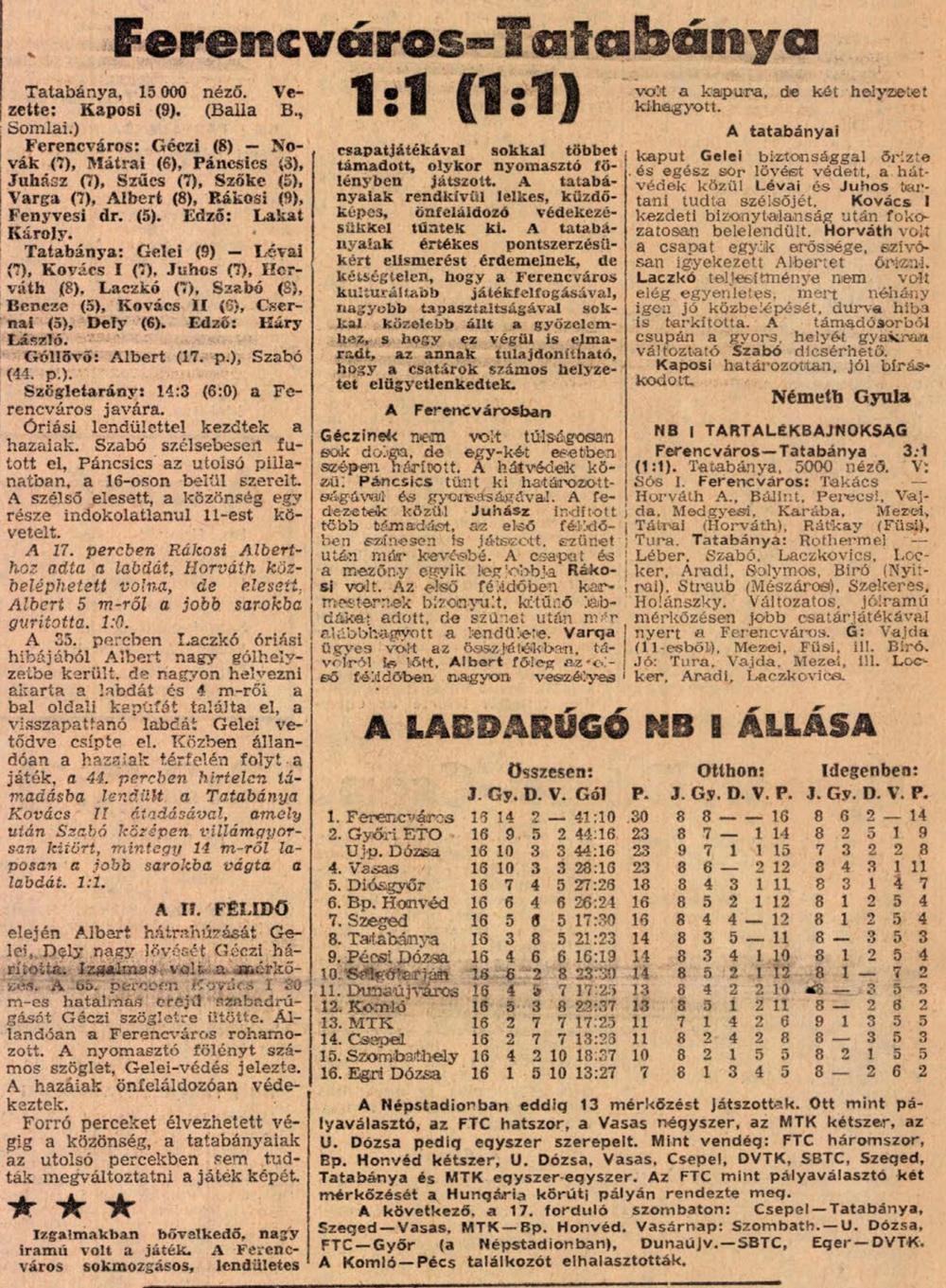 1967.VII.30. Tatabánya – Ferencváros 1:1 Közzétéve: 2009. március 8. vasárnap | Szerző: K@rcsi Önfeláldozó védekezéssel otthon tartott egy pontot a Tatabánya Vélemény, hozzászólás? Válasz megszakításaAz e-mail címet nem tesszük közzé. A kötelező mezőket * karakterrel jelöltük Hozzászólás * Név * E-mail cím * Honlap Δ