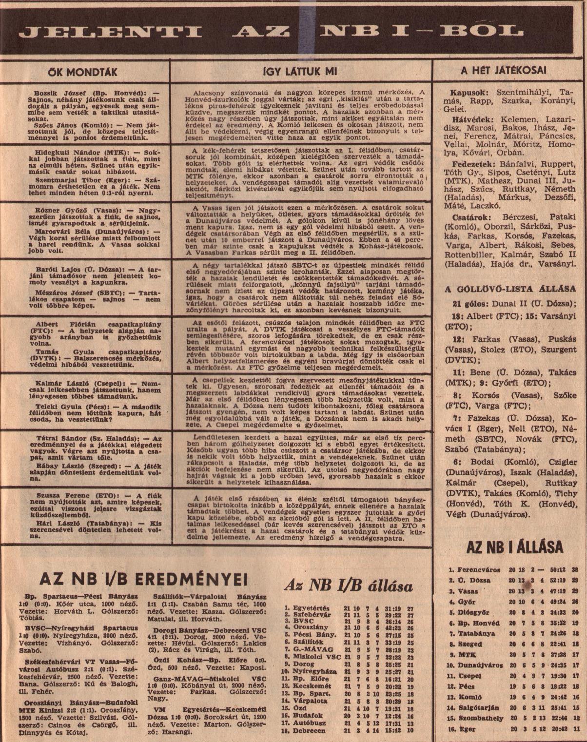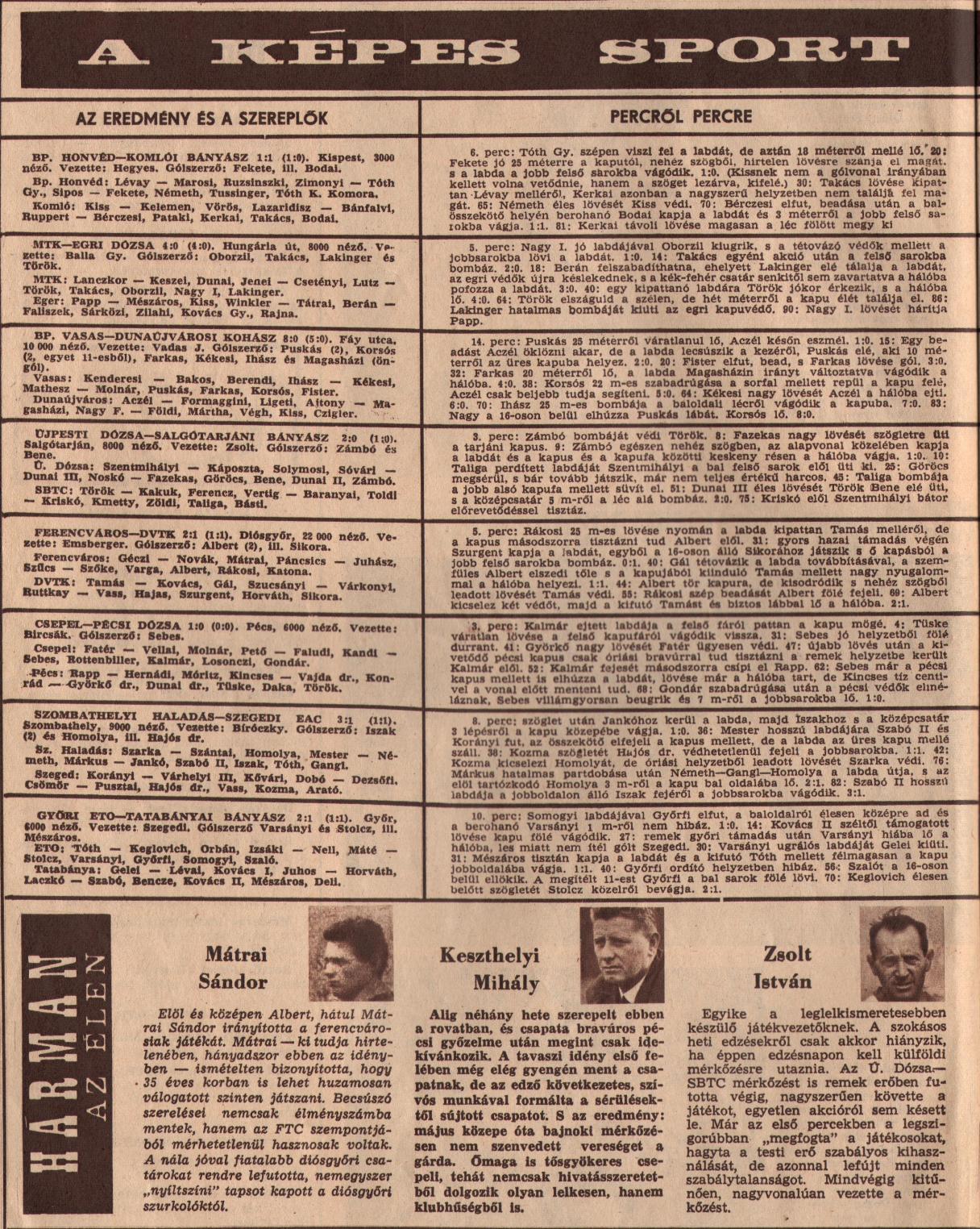 A második félidő forgatókönyve is hasonlított az elsőhöz, a Fradi támadott, a hazaiak hősiesen védekeztek és gyors kontrákkal próbálták meglepni a védelmet, mely nem sikerült, hiszen Mátrai vezetésével hiba nélkül játszottunk. A mérkőzés utáni híradások szerint Albert mellett, a 35 éves Mátrai Sándor volt a csapat legjobbja. A kiváló hátvédünk 1967-ben már a visszavonulást fontolgatta, de amikor a pályán volt, mindig a maximumot nyújtotta. A Diósgyőr ellen is „becsúszó szerelései nemcsak élményszámba mentek, hanem az FTC szempontjából mérhetetlenül hasznosak voltak. A nála jóval fiatalabb diósgyőri csatárokat rendre lefutotta, nemegyszer nyíltszíni tapsot kapott a diósgyőri szurkolóktól” – írta róla elismerően a Képes Sport.