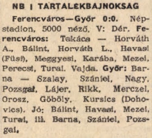 1967.VIII.6. Ferencváros – Győri ETO 2:0