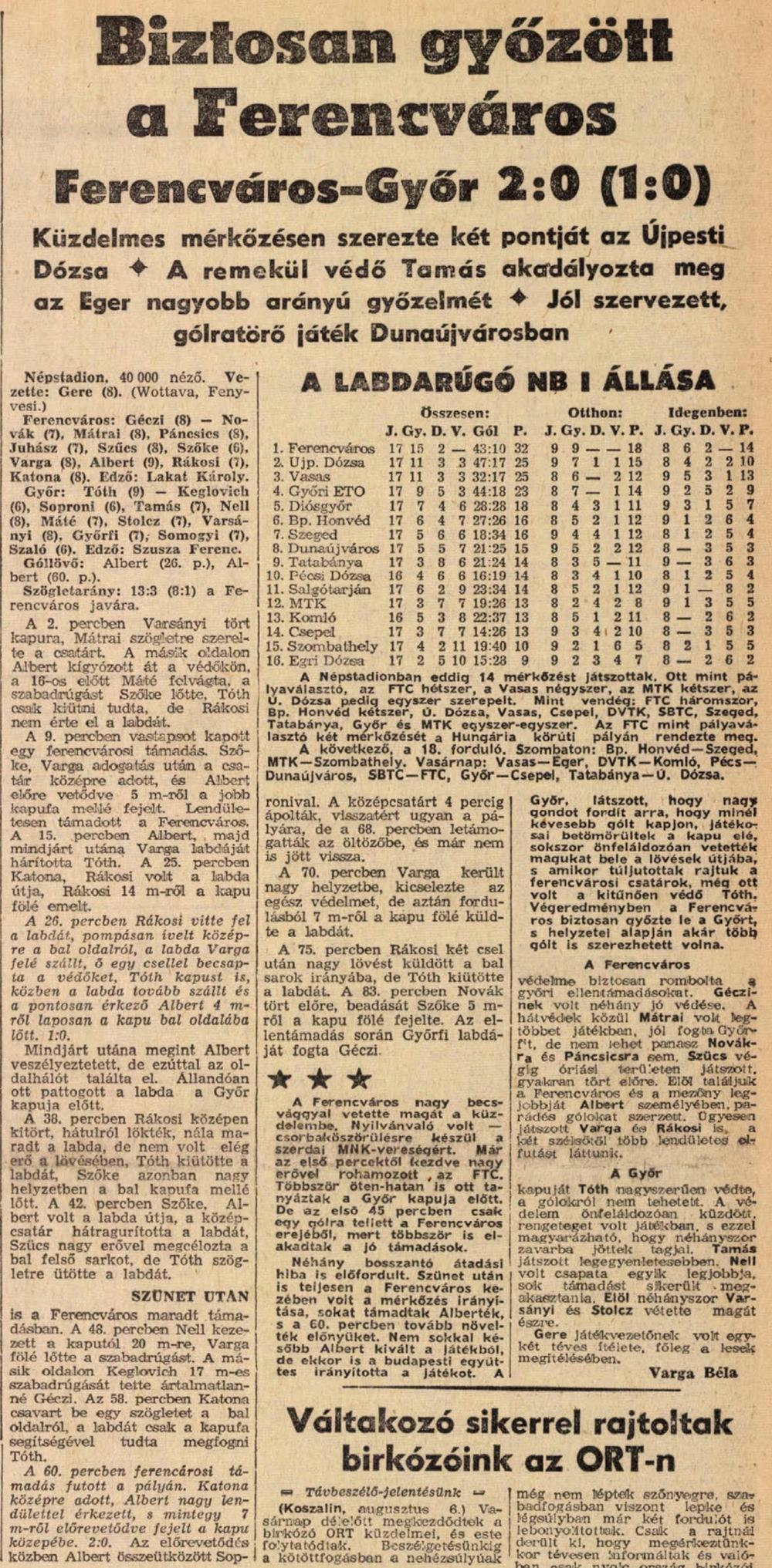 Kategória: 1967 | Címke: 1967, Albert Flórián, Győri (Rába; Vasas) ETO, Katona Sándor, NB1, Rákosi Gyula, Szűcs Lajos (fedezet)