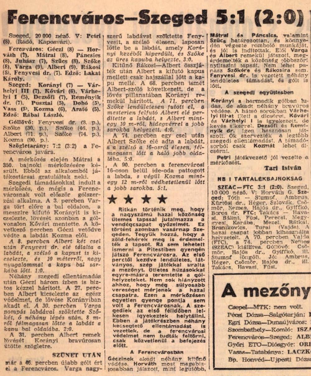 1967.X.1. SZEAC – Ferencváros 1:5 Közzétéve: 2009. március 8. vasárnap | Szerző: K@rcsi Nagyarányú ferencvárosi győzelem! Fenyvesi dr. góljával indult el a gólözön Fenyvesi dr. góljával indult el a gólözön A negyedik gól Vélemény, hozzászólás? Válasz megszakításaAz e-mail címet nem tesszük közzé. A kötelező mezőket * karakterrel jelöltük Hozzászólás * Név * E-mail cím * Honlap Δ