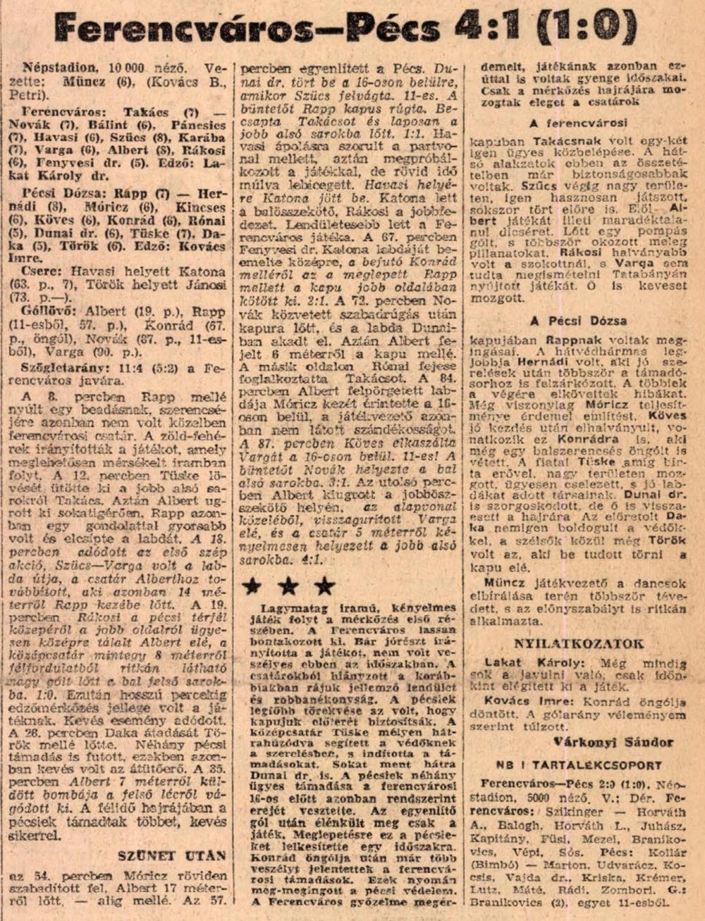 Kategória: 1968 | Címke: 1968, Albert Flórián, büntető (értékesített), NB1, Novák Dezső, öngól, Pécsi MSC, Varga Zoltán