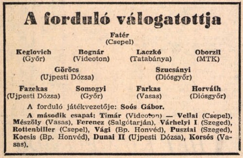 A kapus magabiztosságával nem is volt gond, a csapat játékával már igen. Bár Branikovits góljával nyertünk 1:0-ra, de ha Géczi nem védi ki egy bravúros mozdulattal Kű lövését (a székesfehérvári csatár egyedül vezette a labdát a kapunkra), akkor egy újabb váratlan pontvesztést szenvedtünk volna el. A Fradi történelmét jól ismerők most biztos felkapták a fejüket Kű Lajos nevének olvasásakor. Amikor válogattam a Videoton elleni mérkőzések között, két indok miatt választottam az 1968-as összecsapást. Kű Lajos volt az egyik indok. Amikor megláttam a nevét a Sportújságban, csak akkor ötlött fel bennem, hogy ő Székesfehérvárról indult „meghódítani” a világot és onnan is került 1970-ben a Fradihoz. Nálunk 127 alkalommal lépett pályára, 32 gólt szerzett és azalatt a négy év alatt négy bajnoki ezüstérmet és egy magyar kupát vehetett át zöld-fehérben. Kivételes képességű játékos volt, de az elég zűrös életvitele megakadályozta abban, hogy meghatározó tagja legyen a magyar labdarúgásnak. A Fradi 1974-ben mondott le végleg róla, tőlünk a Vasashoz került, majd 1977-ben hagyta el az országot (az akkori hivatalos megfogalmazással „disszidált”) és bár a MLSZ eltiltotta egy időre, de 1978-ban már Belgiumban lépett pályára (ebben az évben BEK döntőt is játszott az FC Bruges színeiben és ha jól emlékszem a magyar tévé is közvetítette a találkozót).
