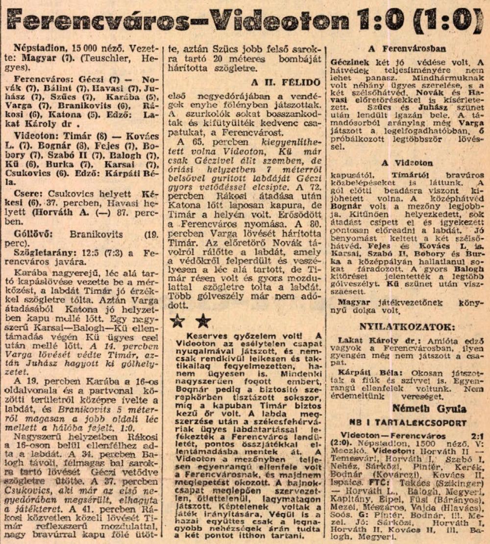 1968.IV.14. Ferencváros – Videoton 1:0