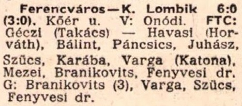 1968.IV.18. K. Lombik – Ferencváros 0:6 (edzőmérkőzés)