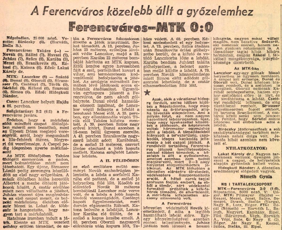 Kategória: 1968 | Címke: 1968, Mezei Béla, MTK (MTK-VM; Hungária), NB1, Novák Dezső