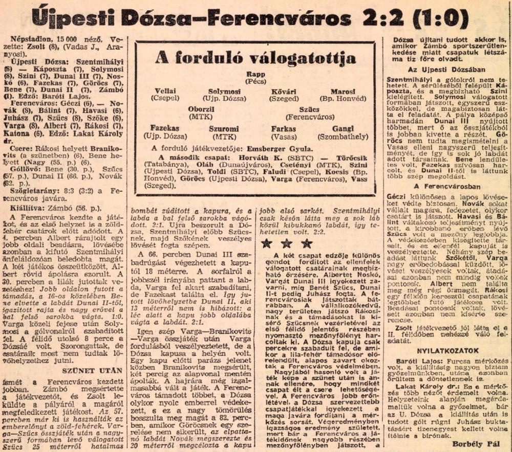 1968.V.19. Újpesti Dózsa – Ferencváros 2:2