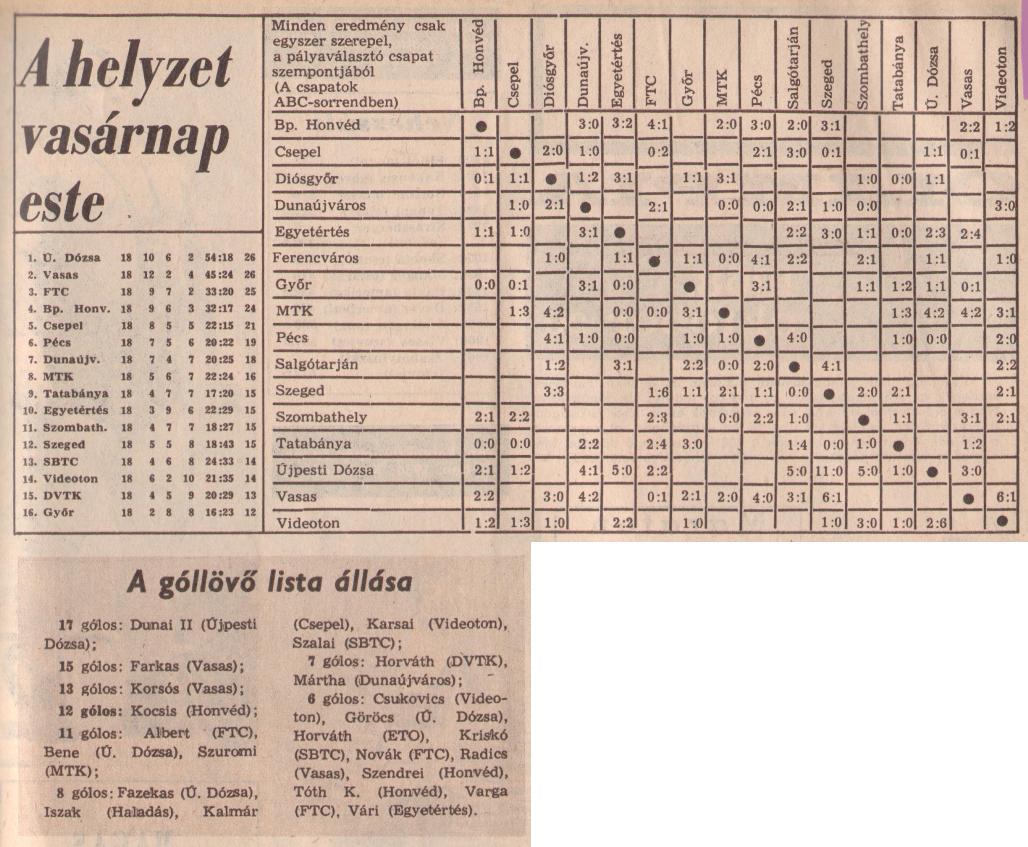 Én is úgy emlékszem, pedig csak TV-n keresztül láttam, hogy hatalmas meccs volt, végül is Európa 8-10 legjobb csapatából játszott 2…fiataloknak mondom, mint ma egy Chelsea-Arsenal v. Man City-Liverpool vagy Juve-Milan… kb. annyian érdeklődtek is iránta… hányszor kezdődött úgy a közvetítés, hogy” közvetítésünket átveszi az Intervízió és az Eurovízió” – bizony, fél tucat európai országban szombat esti fő műsoridőben a program egy magyar bajnoki volt… hihetetlen? Ma már az… Valóban megtörtént? Igen! Akkor, tessék …. a példa adott..