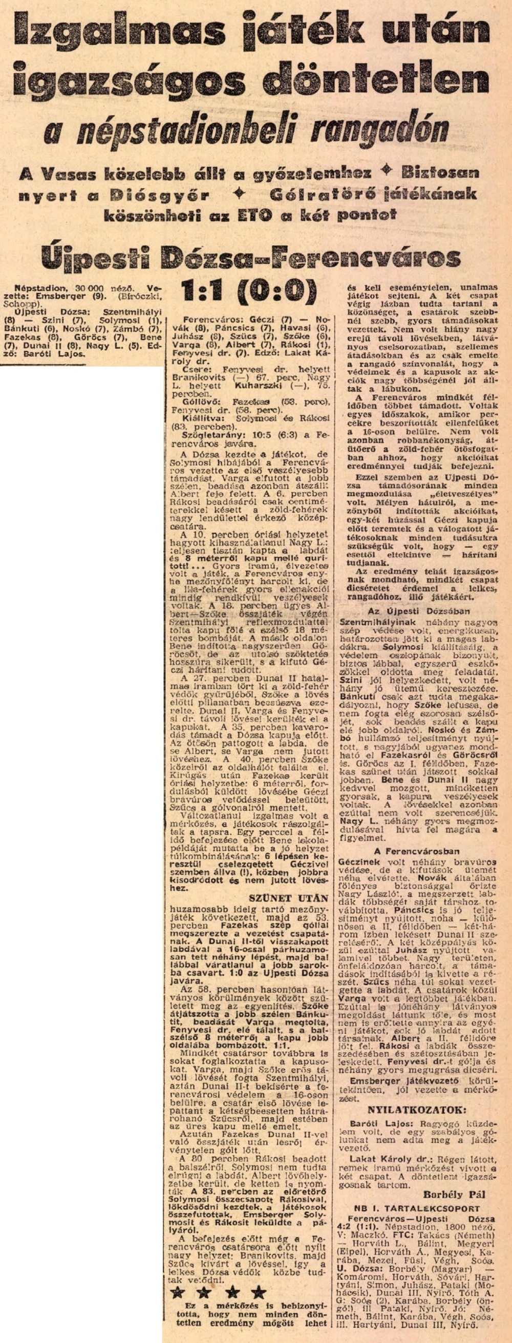 ÉRDEKESNEK TаNIK A KÉPES SPORT KRITIKÁJA,MIVEL A NÉPSPORT MÁSNAPI SZÁMA AZT íRTA,HA EMLÉKSZIK VALAKI,HOGY FUTBALL PARÁDÉ A NÉPSTADIONBAN!13 ÉVES VOLTAM AKKOR ÉS EGY ROKONOM VITT EL A MECCSRE,BALATONFÜREDI RÉVÉN AKKOR JÁRTAM ELŐSZŐR A STADIONBAN,AMI HATALMAS ÉLMÉNY VOLT!