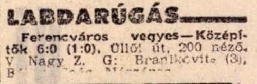 1968.XI.14. Ferencváros – Középítők 6:0 (edzőmérkőzés)