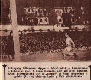 Az 1967/68-as VVK sorozat negyedik fordulójának első mérkőzése után, amit csapatunk nagy csatában 2:1-re nyert meg, az edzőnk, Lakat Károly dr. röviden csak ennyit mondott: „nagyon nehéz dolgunk lesz a visszavágón”. Az első mérkőzés láttán, ezt nem csupán a kötelező óvatosság mondatta a nagyszerű mesterrel, hanem az aggódás is, főleg a bekapott gól miatt. Ettől függetlenül, ha az első mérkőzésen a csapat kihasználja a kínálkozó lehetőségeket, akkor sokkal nagyobb előny birtokában utazhattunk volna baszk fővárosba, Bilbaóba.