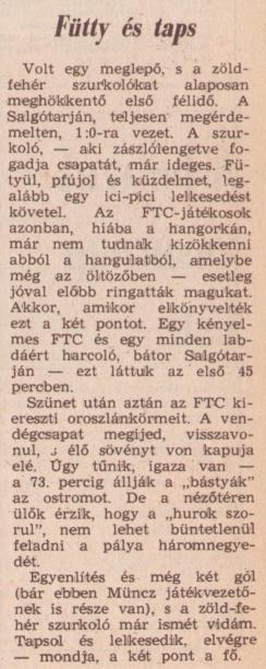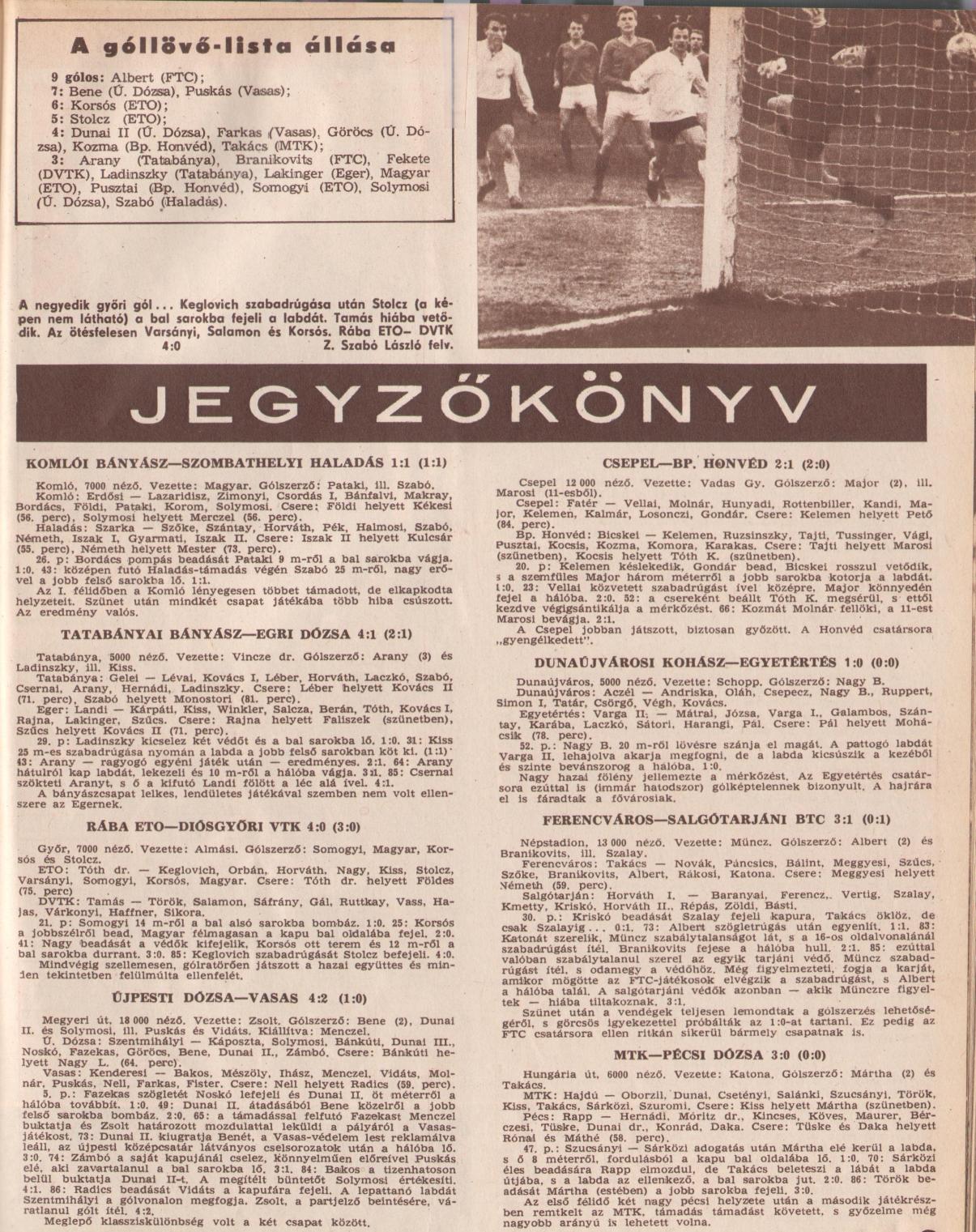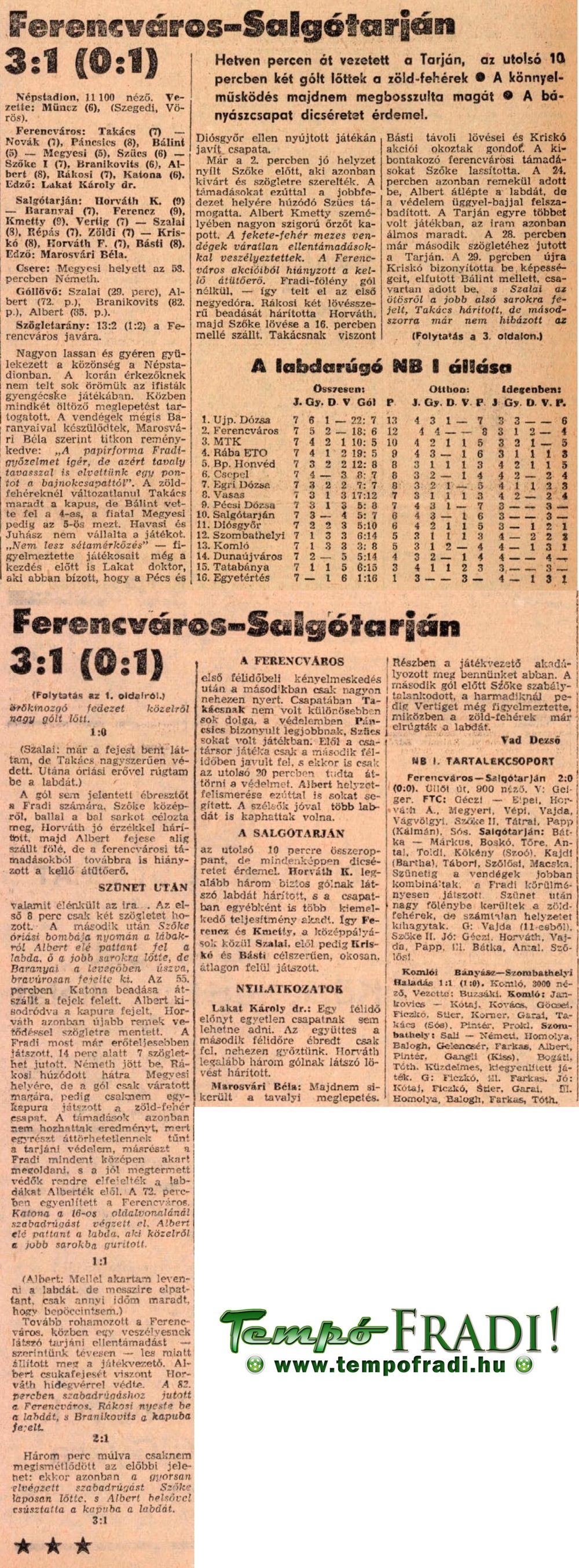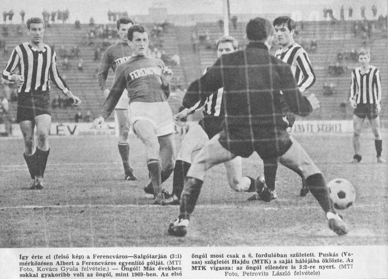 1969.IV.20. Ferencváros – SBTC 3:1 Közzétéve: 2009. március 10. kedd | Szerző: K@rcsi Csak a második 45 percben tudta a maga javára fordítani a mérkőzés sorsát az FTC Albert második gólja Albert és Branikovits 5 védő gyűrűjében Vélemény, hozzászólás? Válasz megszakításaAz e-mail címet nem tesszük közzé. A kötelező mezőket * karakterrel jelöltük Hozzászólás * Név * E-mail cím * Honlap Δ