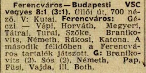 1969.IX.24. Ferencváros – BVSC vegyes 8:1 (edzőmérkőzés)